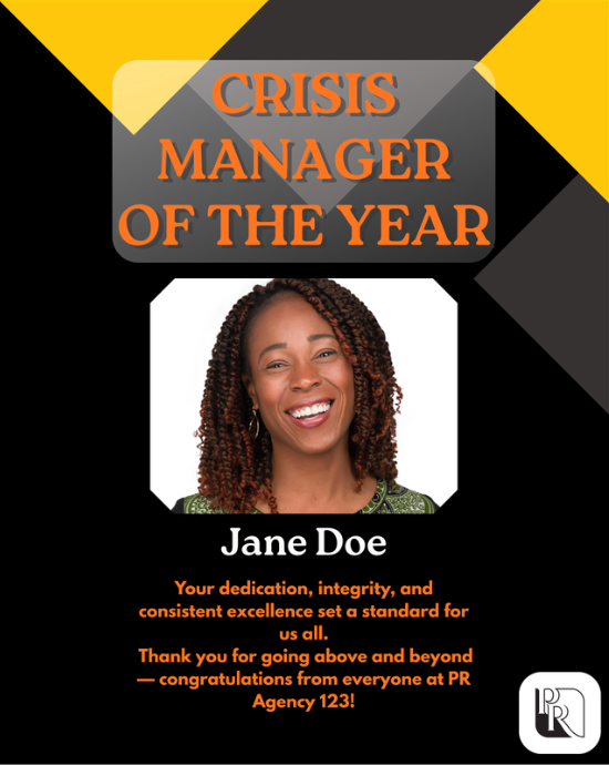 This is an intranet post I created for a fake PR agency. This post recognizes a team member from an underrepresented group for their recent achievement.